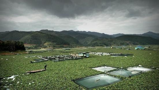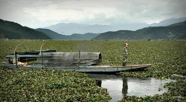 福建寧德市古田縣水口鎮灣口村段,浩浩蕩蕩的水葫蘆延綿閩江近10公里,如同草原。2011年,該鎮400多養殖戶的網箱遭遇大面積死亡現象損失上億元,今年養殖區又遭水葫蘆圍困魚苗都無法放養。